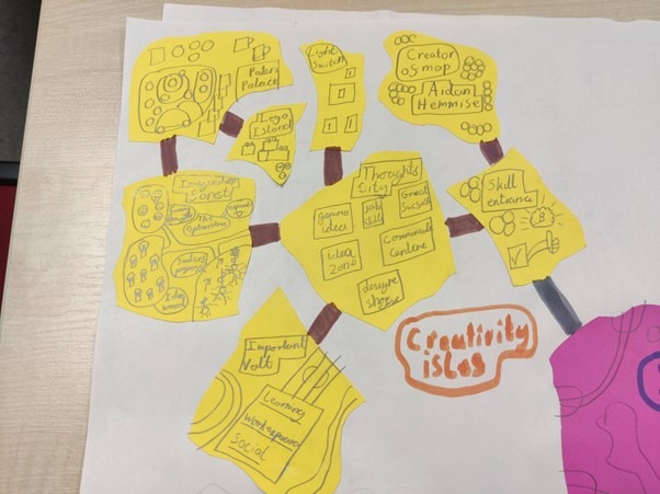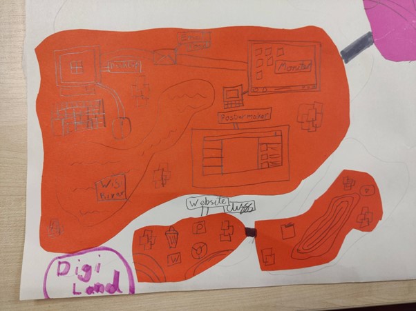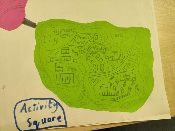 Aidan also came to us with lots of skills already developed, such as creativity, which he put to excellent use in his reflective piece below. Aidan enjoys making maps of fantasy worlds from video games, so he incorporated this into his project. The aim of the project was to reflect on his Work Experience placement and what he has learnt. Aidan used his excellent creative skills to design this map, showcasing his Work Experience placement through visual storytelling. The map includes Digi Land, where Aidan honed his technology skills, Activity Square, Memory Bank, and Creativity Isles. We were so impressed with Aidan’s hard work, and his map is a lovely representation of everything he achieved during his placement.