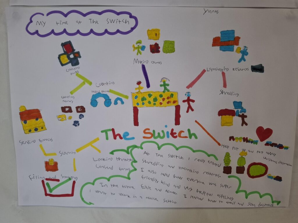 Yunus developed key employability skills such as organisation, communication with team members, creativity, and confidence. It was a pleasure to work with Yunus and see his skillset grow! At the end of his placement, Yunus created a poster to reflect on his time working at The Switch. The poster highlights lots of tasks that Yunus completed and enjoyed, including shredding and laminating. As a result of his work experience placement, Yunus has decided that he would like to work in an office setting in the future. Well done Yunus and good luck for your future career!